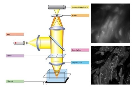 因?yàn)閷?duì)孔徑的共同的安置,共聚集顯微鏡勘探器所供給的圖畫對(duì)應(yīng)于一個(gè)薄的光學(xué)切片或是樣品的截面。例如,一個(gè)幾毫米厚的樣品在焦平面處沿z軸降最少于微米。