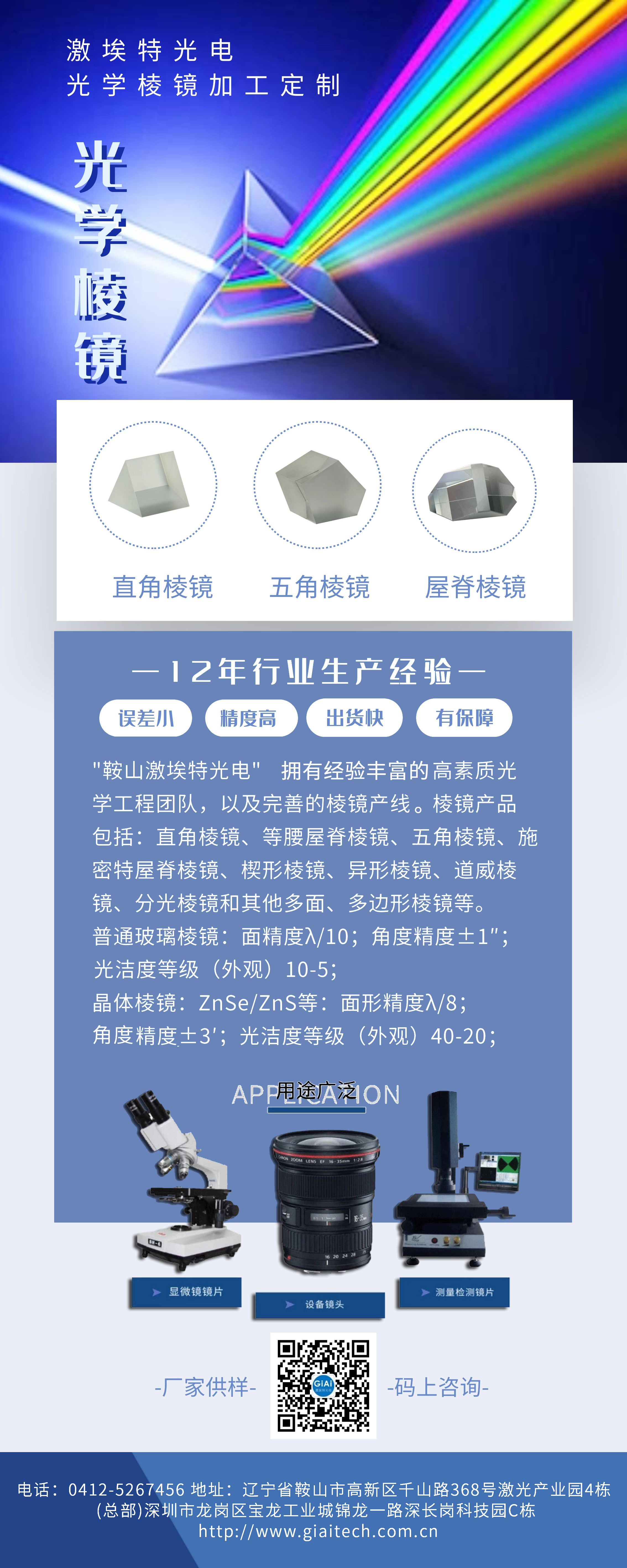 在光學(xué)儀器中應(yīng)用很廣。棱鏡按其性質(zhì)和用途可分為若干種。例如,在光譜儀器中把復(fù)合光分解為光譜的“色散棱鏡”,較常用的是等邊三棱鏡;