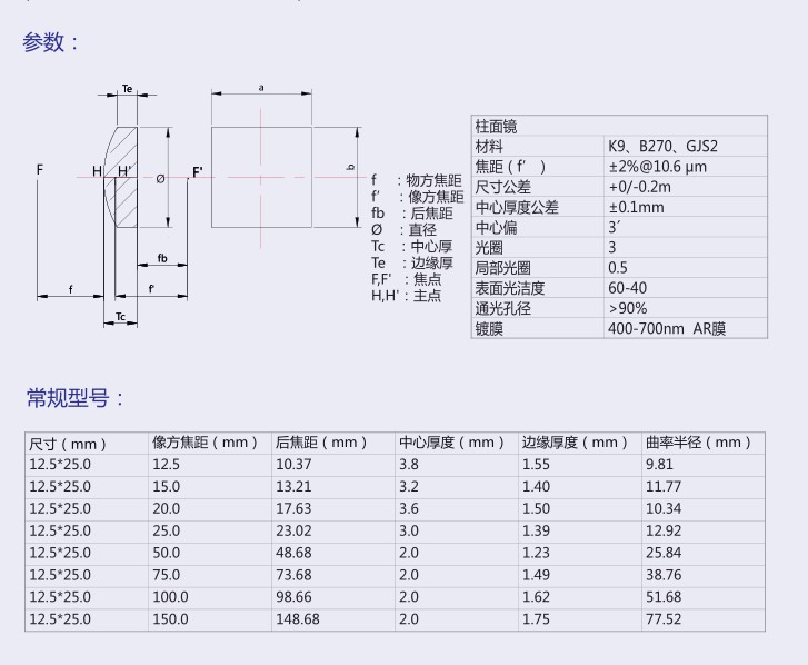 柱面鏡是非球面透鏡,可以有效減小球差和色差。分為平凸柱面透鏡、平凹柱面透鏡、雙凸柱面透鏡、