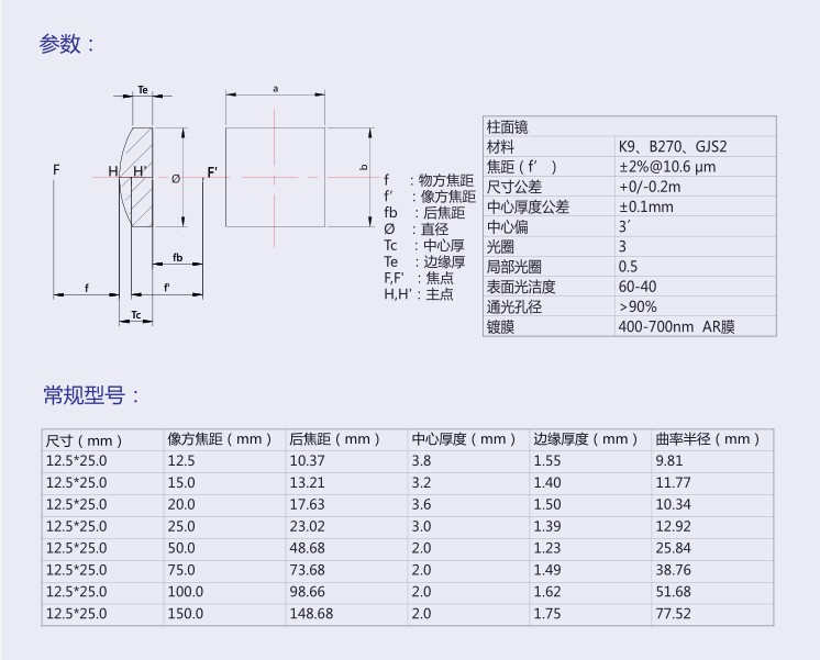 產(chǎn)品介紹: 柱面鏡是一維放大應(yīng)用的理想選擇。球透鏡對(duì)入射光在兩個(gè)方向上的作用是對(duì)稱的, 而柱面鏡對(duì)入射光只有一
