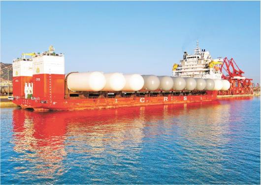 2022年11月2日,山東威海,石島重工有限公司為非洲安哥拉制造的大型石油液化氣儲罐,首批在榮成市石島港正式啟運,將通過海運運往非洲國家?! ?jù)了解,這些被稱為超大“子彈罐”的“巨無霸”,每臺直徑8米…